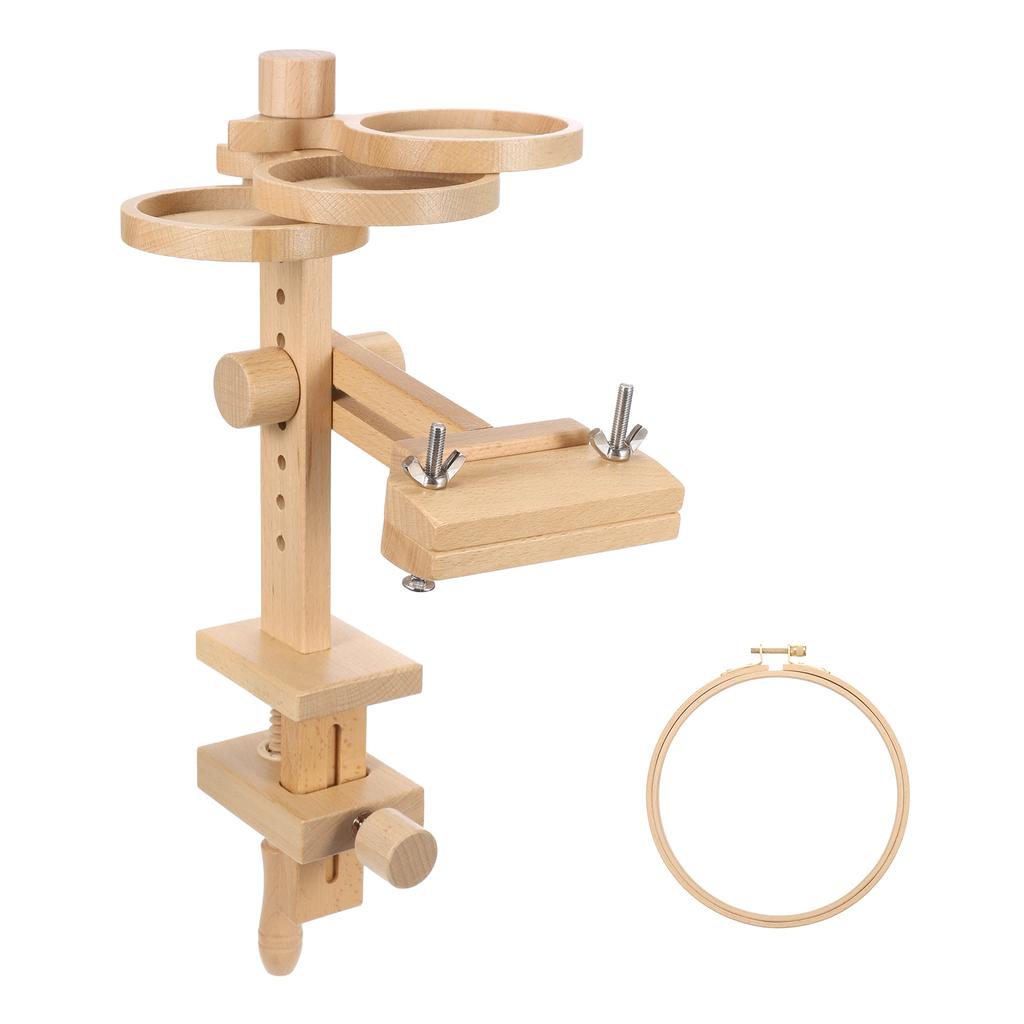 Embroidery Hoop Stand Adjustable Beech Wood Cross Stitch Stand Holder with Built-in Storage Tray with 6/8" Embroidery Hoop