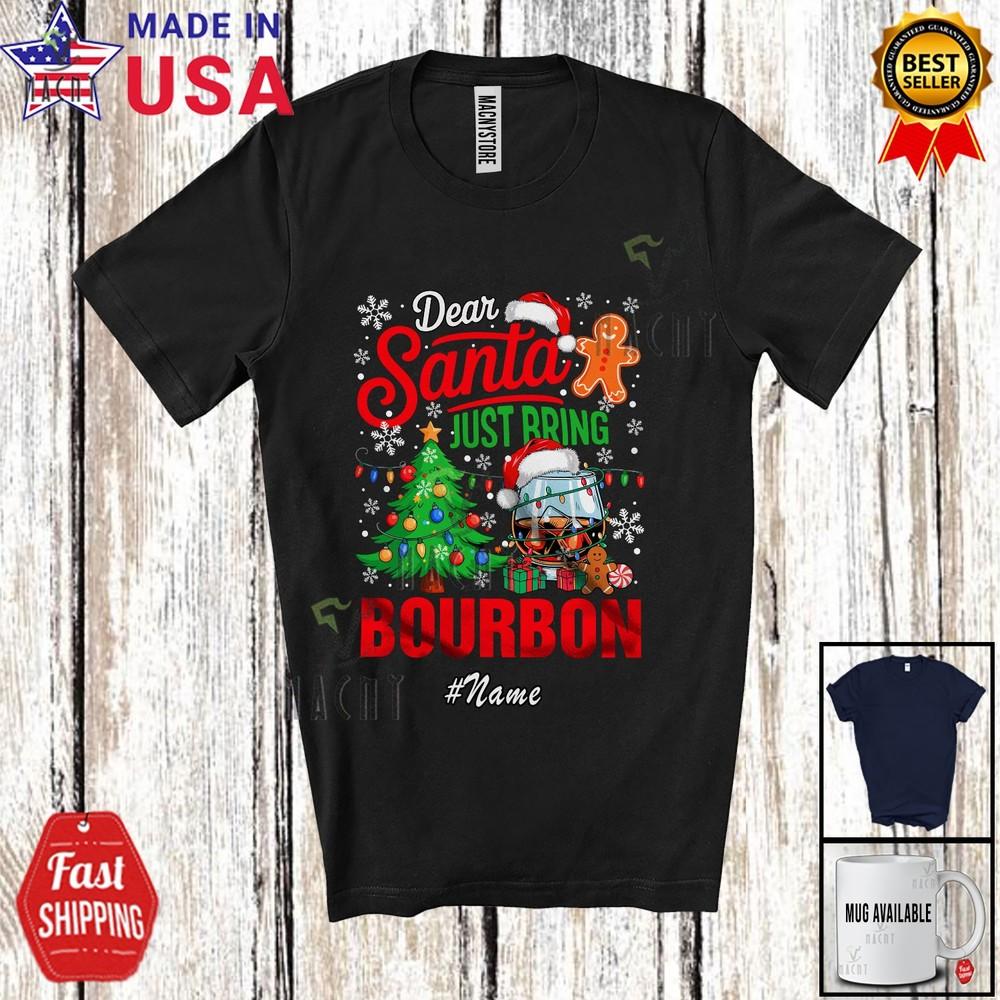 Custom Name Santa Just Bring Bourbon Cheerful Christmas Drunker Drinking Shirt