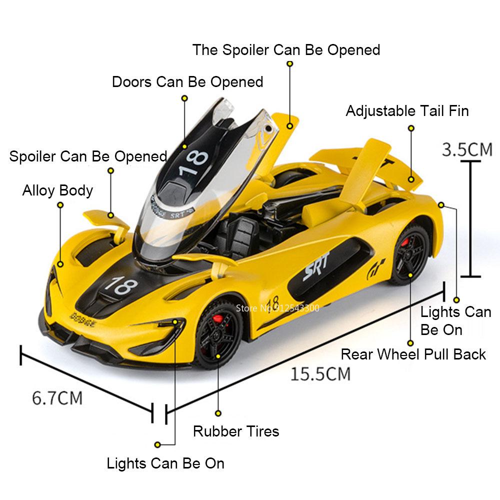 1:32 Scale SRT Tomahawk XVGT Rolls Royce Dawn Alloy Car Model Toy Music Light Pull Back Supercar Models Kids Desktop Ornaments