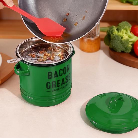 Durable Three-Layer Enamel Construction: Crafted with a classic three-layer enamel design, this cooking grease saver jar withstands temperatures up to 750 degree Fahrenheit. Perfect for frying, roasting, and baking, it ensures long-lasting durability and heat resistance, making it an essential tool for high-heat cooking tasks without cracking or warping.