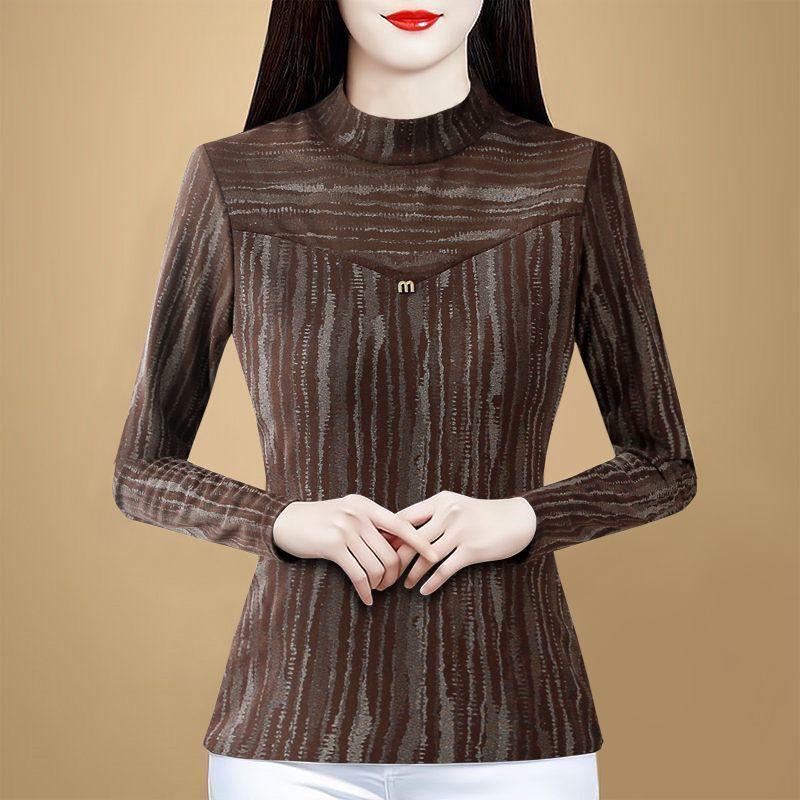 Thickened Velvet Lace Bottoming Shirt Women's Long-sleeved T-shirt Autumn Winter New Outer Wear Warm Mesh Top