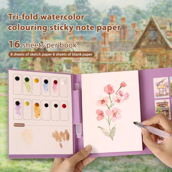 Unleash your creativity on-the-go with this gouache painting book! Designed for portability, its tri-fold feature allows easy storage in your bag, perfect for outdoor sketching or travel adventures.