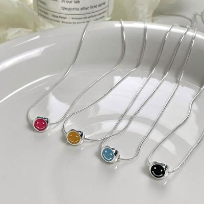 Stylish Multi-colored Alloy Smiley Face Necklace Featuring Elegant Water Wave Chain