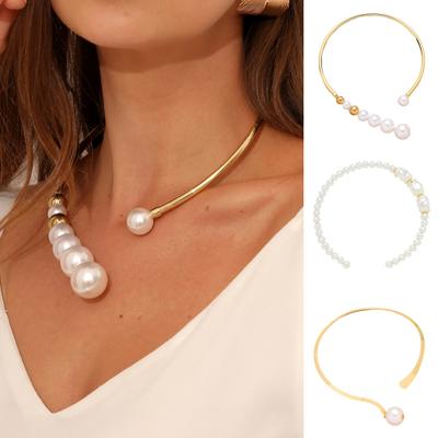 Faux Pearl Necklace Glossy Surface Comfortable To Wear Metallic Delicate Sparkling Necklace