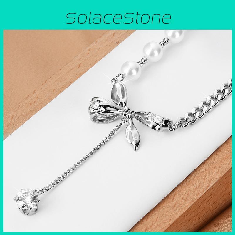 Introducing our Lightweight Pearl Bow Necklace, a stunning blend of modern design and timeless elegance that will elevate any outfit. Crafted with a meticulous eye for detail, this exquisite necklace features a beautiful bow design that embodies a unique, non-mainstream aesthetic. The delicate pearl accents add a touch of sophistication, making it the perfect accessory for women who wish to express their individuality and style.