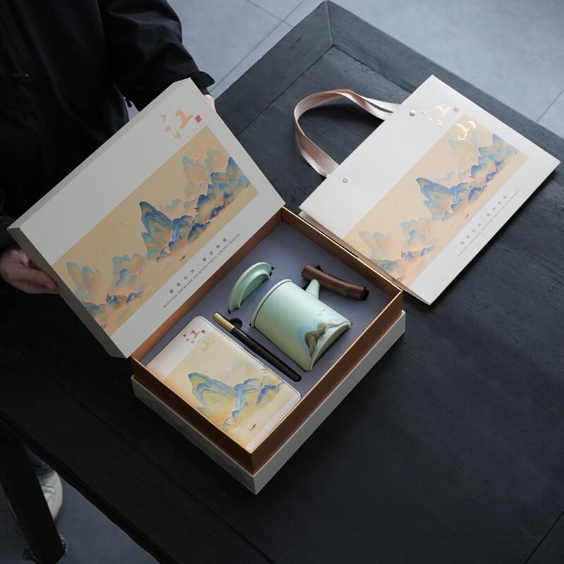 ModelLight Blue Cangmu Ceramic Cup, A6 Notebook & Pen Set