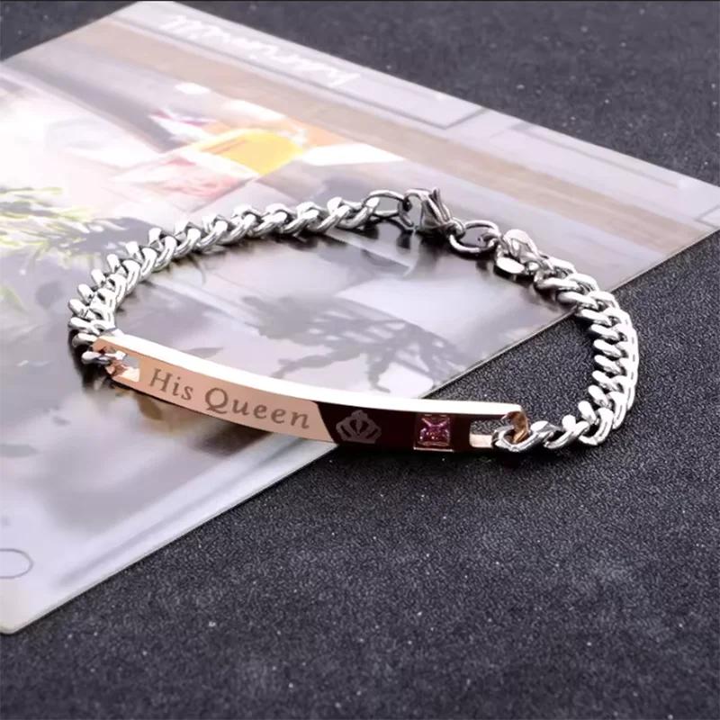 2 Style His Queen Her King Black Rose Gold Color Women's Male Chain Crystal Couple Bracelet for Men Femmo On Hands Jewelry