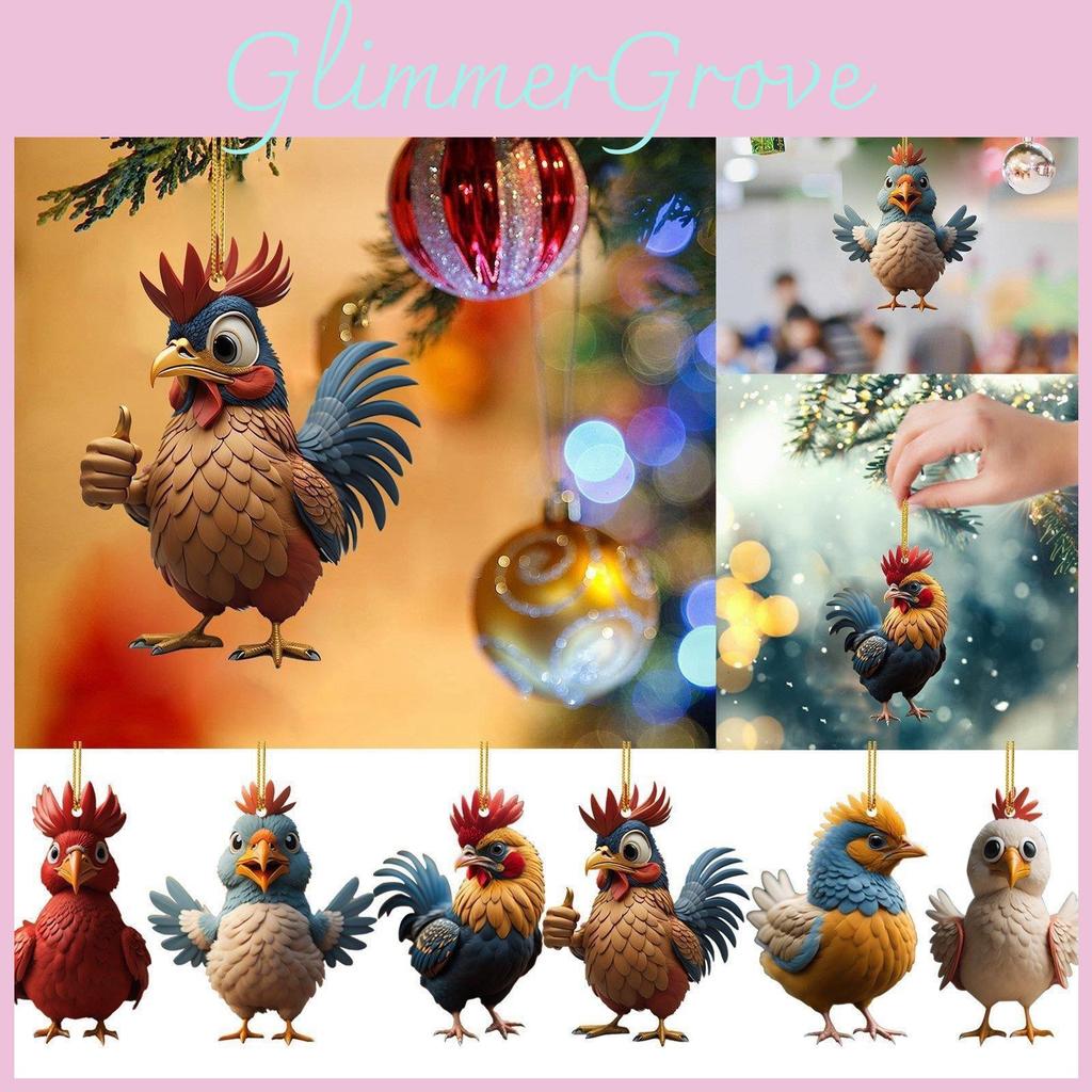 Unique Design: Featuring an adorable cartoon chicken, this ornament adds a whimsical touch to your car or home decor, perfect for the festive season.