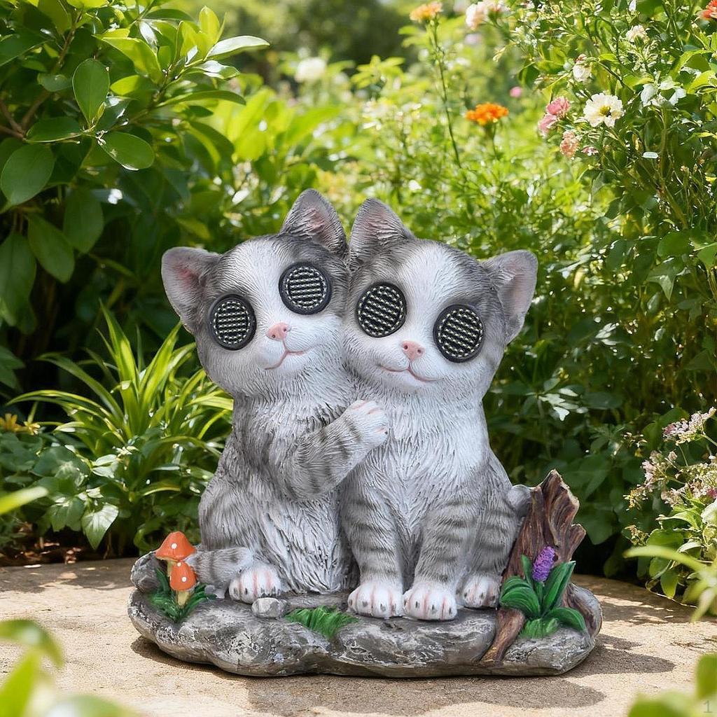 - 【Material】: The garden cat couple solar light statue is made of resin material, is sturdy and not easy to break, and ensures long service time