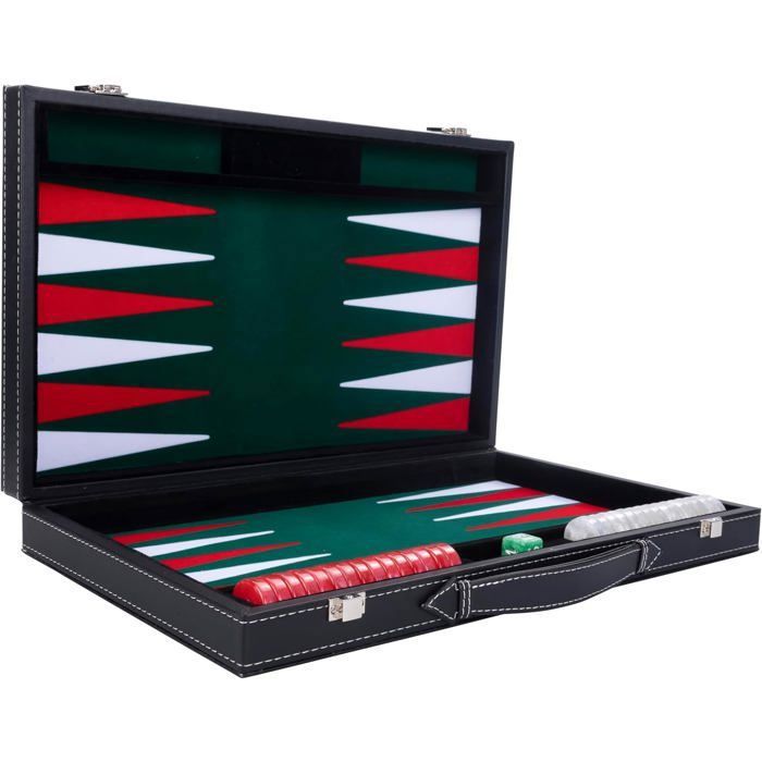 Backgammon de luxe 47 cm x 38 cm x 2,7 cm pro. et loisirs (vert/rouge/blanc)