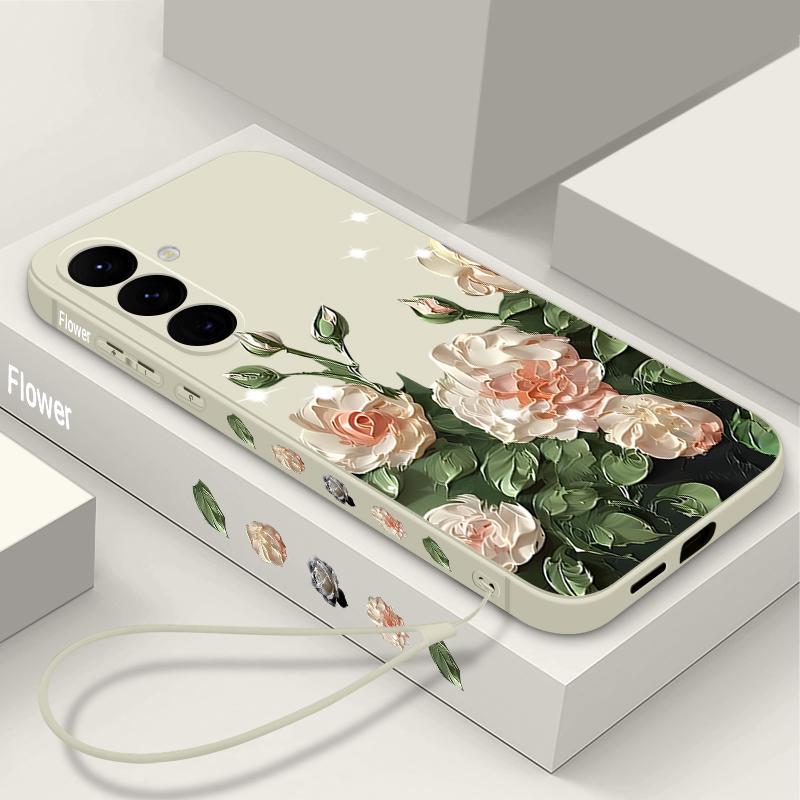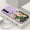 Rose Flower Paintings TPU Case For Samsung Galaxy S24 S25 FE S26 S25 S23 S22 Ultra A17 A56 A16 A55 A25 A15 A36 A54 5G Lanyard Soft Cover
