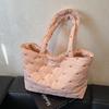 Large Capacity Shoulder Bag Cute Sweet Bow Prints Handbag Soft Puffer Tote Bag Women Commute Casual Simple Storage Bag