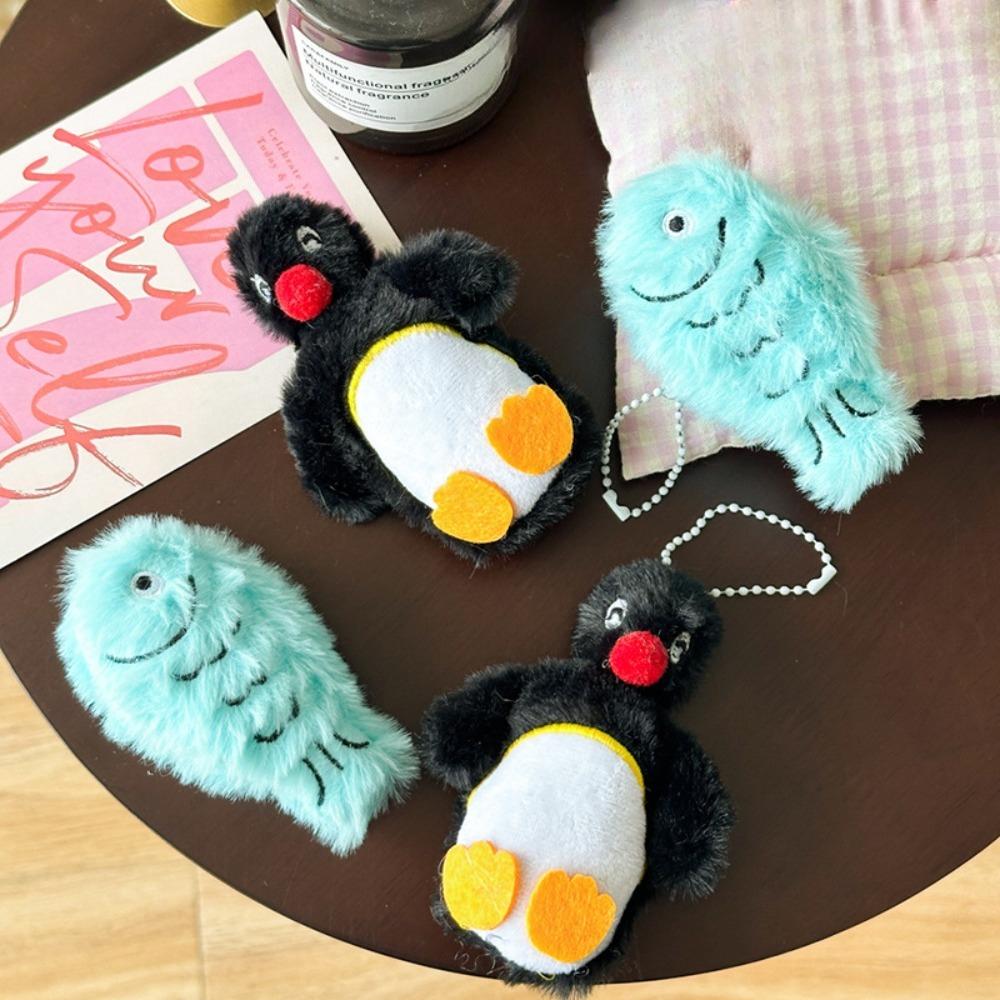 Korean Lovely Cartoon Plush Penguin Fish Pendant Fashion Car Keychain Pendant Backpack Decoration
