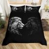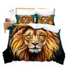 Lion Print Duvet Set Full Size Animal Flower Quilt Cover Natural Theme Bedding Three-Piece Set