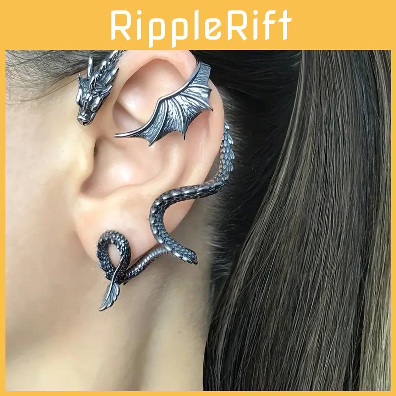 This punk-style ear jewelry features a vintage alloy design with intricate dragon-shaped motifs, delivering a bold and rebellious look. Made of durable alloy with electroplated finishes, it measures approximately 2 inches in length, perfect for statement accessories. Ideal for parties or alternative fashion, it adds a striking touch to any outfit. Wipe clean with a soft cloth to maintain its finish.