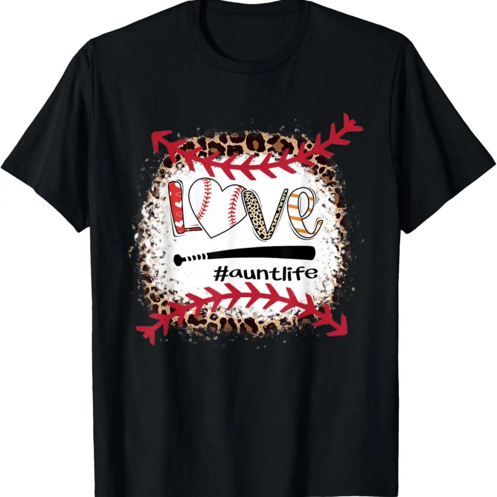Love Baseball Aunt Tee Baseball Aunt Leopard Print Bleached T-Shirt