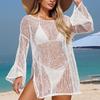 Side-slit Loose Solid Color Pullover Knitted Cut-out See-through Sexy Beach Sun Protection Bikini Blouse
