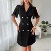 YYFS Women's Fashion Summer Spring Solid Color Print Short Sleeve V-Neck High Waist Casual Dresses