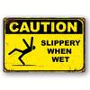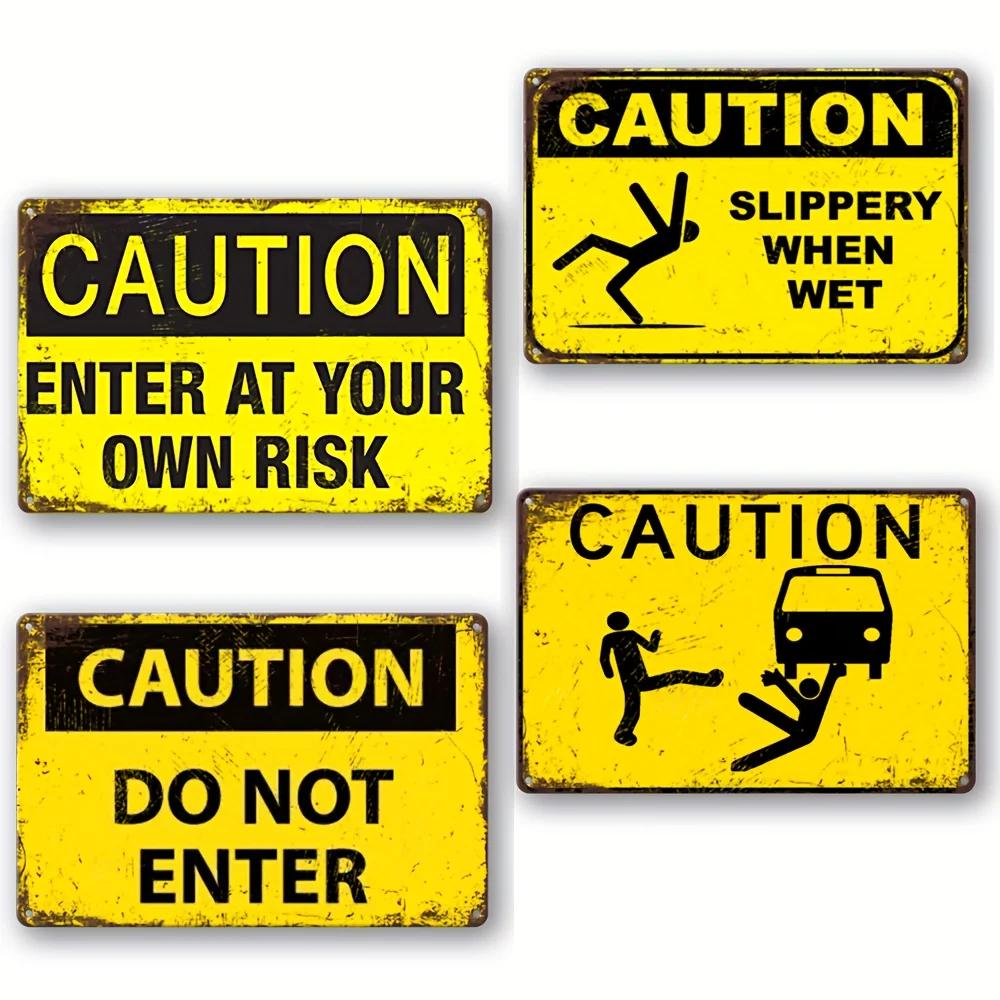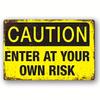 Vintage Metal Warning Tin Sign, Caution Enter At Your Own Risk/ Slippery Shen Wet/Do Not Enter,Room Home Restaurant Garage De