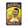Absinthe Vintage Poster Beer Metal Sign Decorative Wall Plate Retro Metal Plaque Man Cave Home Metal Plate Wall Industrial Decor