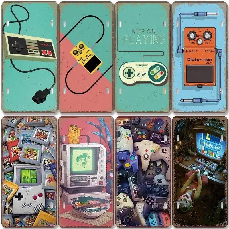 Vintage Video Game License Plate Metal Sign Playstation Gamer Metal Tin Poster For Boys Play Room Workshop Home Wall Art Decor