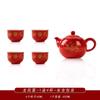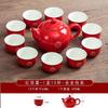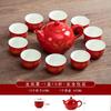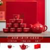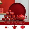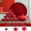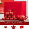 "Traditional Chinese Wedding Tea Ceremony Set - Red Double Happiness Tea Cups with Golden Tray, Bridal Dowry Gift for Newlyweds