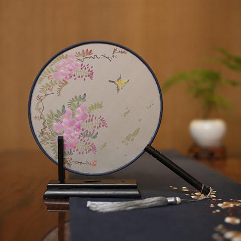 Suzhou-Double-sided Embroidery Hand Held Fan, Round Circular, Hand-embroidered Dance Silk Fan, Chinese Style Gifts, Hanfu Home