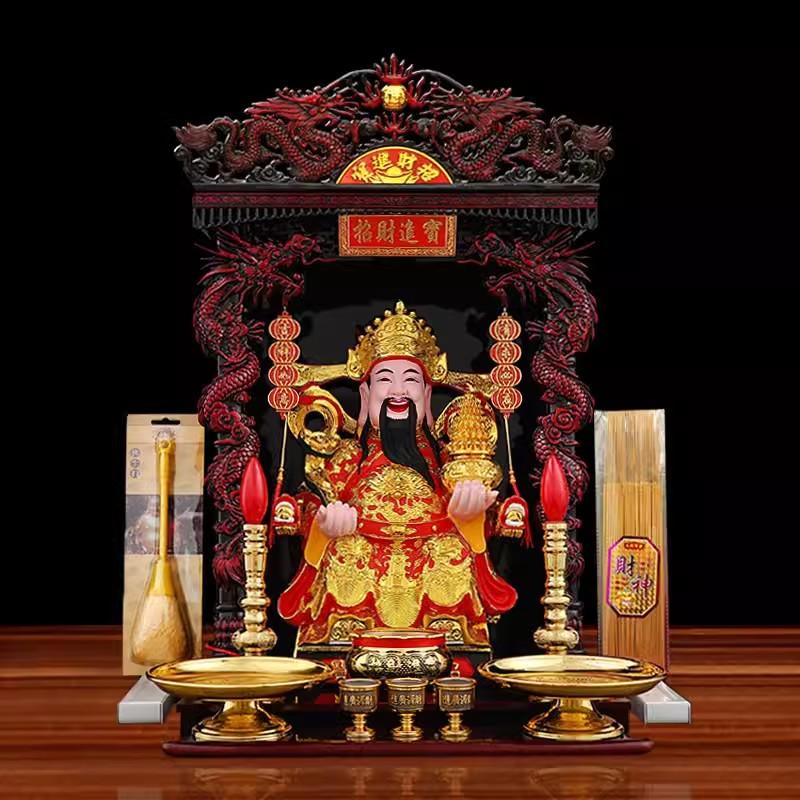 Gold-Plated Resin Buddha Statue of God of Wealth, Ornament for Family Worship Temple, Chinese Figurine, 12 In