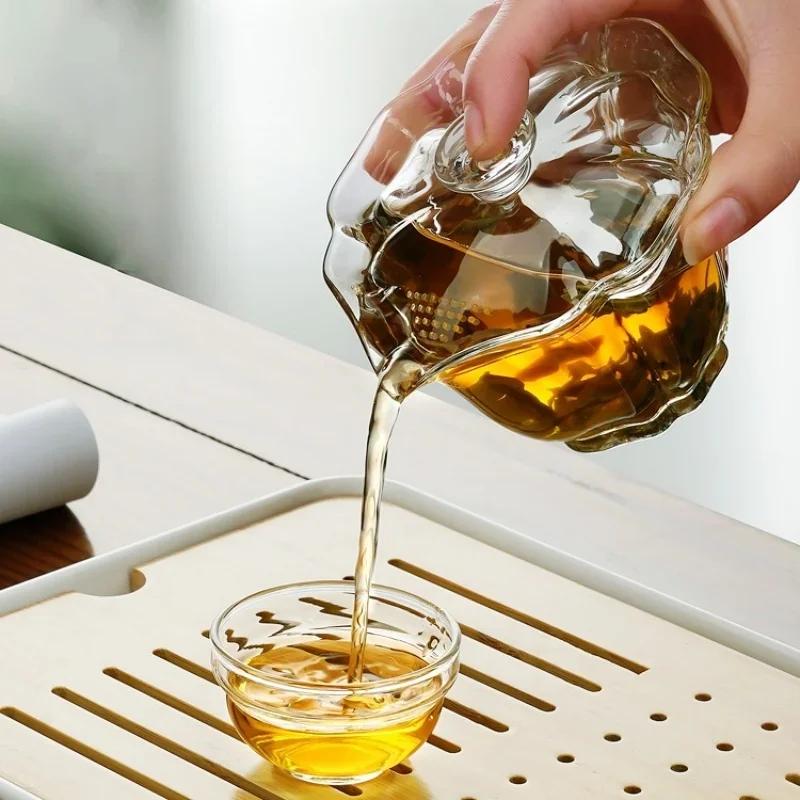 Transparent Glass Tea Tureen Heat Resistant Tropical Filter Mesh Hole Kung Fu Tea Making Tools Household Drinking Mugs