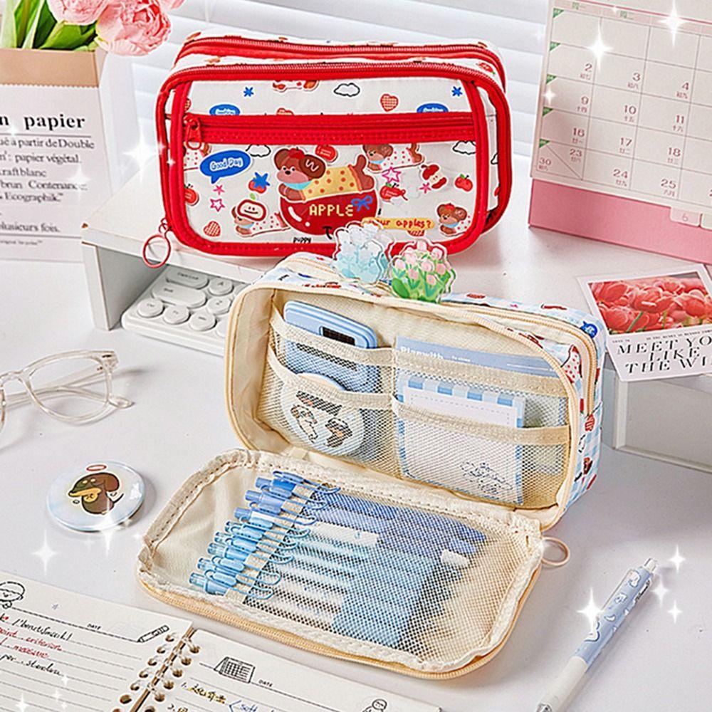 High Value Cute Puppy Pencil Case Large Capacity Multi-layer Stationery Storage Bag Pen Box School Supplies