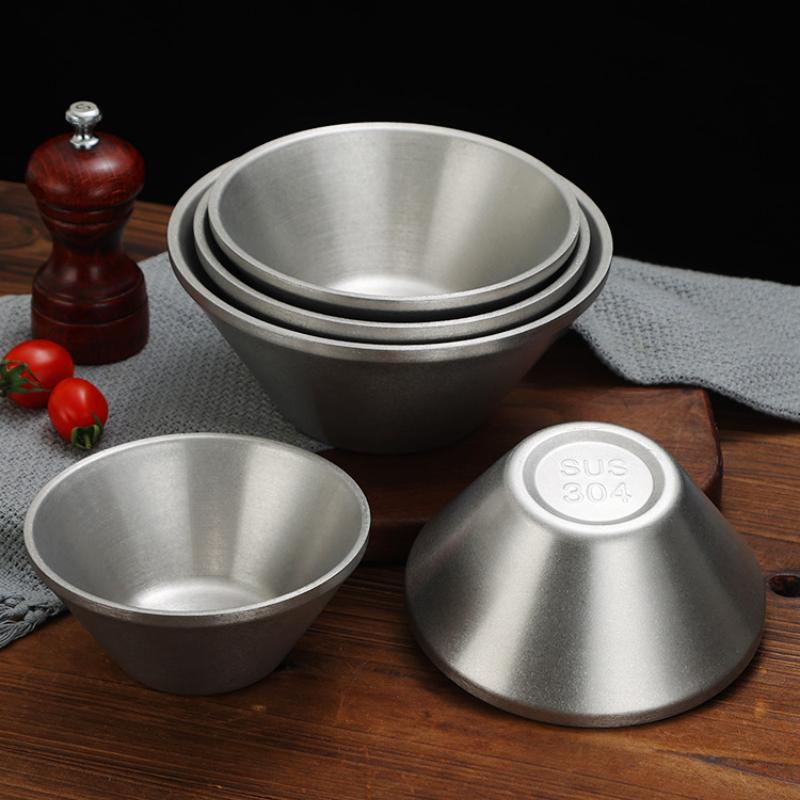 Retro Stainless Steel Salad Bowl Korean Style Double Layer Thicken V-Shaped Ramen Noodle Bowls Soup Rice Bowls Kitchen Tableware