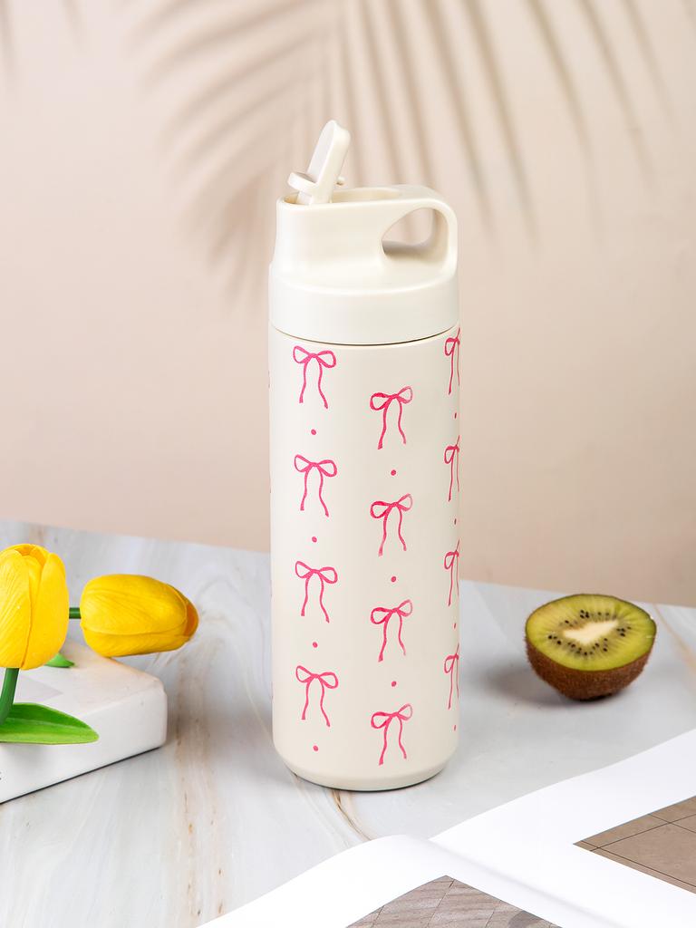 500ml Stainless Steel Bow Thermo Water Bottle Double-layer Cherry Print Vacuum Cup Leak Prevention Insulated Flasks Thermal Tumb