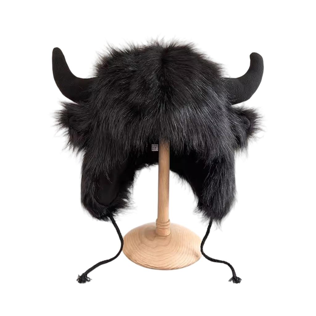 Funny Cow Head Cap Plush Lei Feng Hat Ladies Winter Warm Windproof Ear Protection Hat Men Women Cold Proof Cycling Hat
