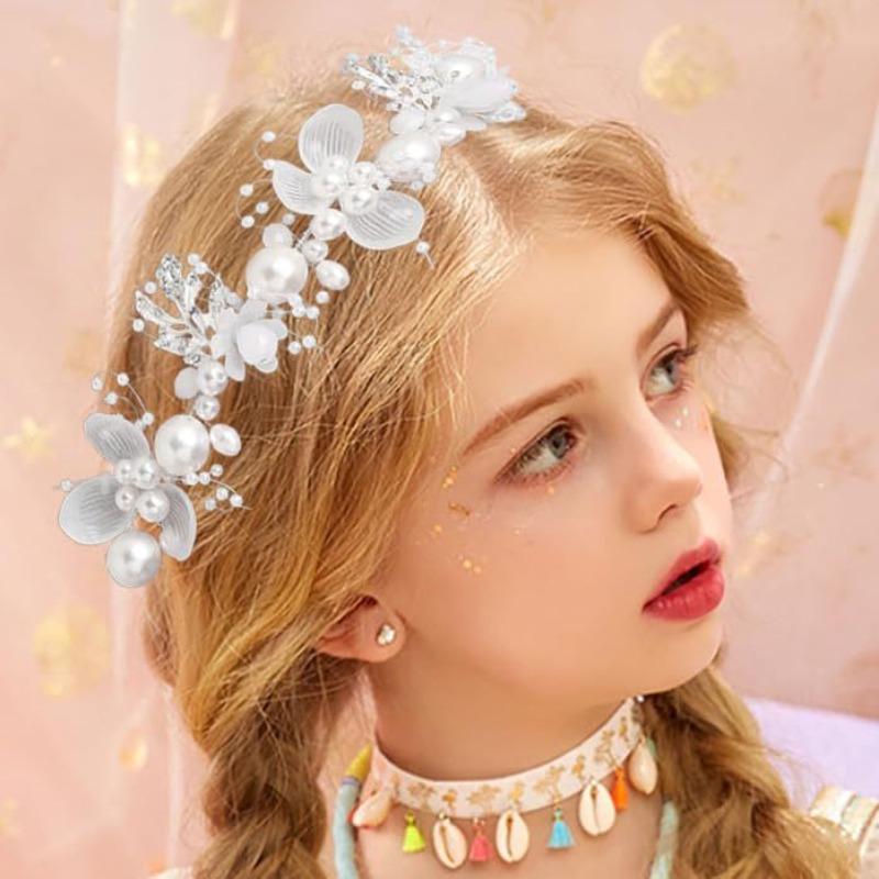 1Pc Children's Floral Pearl Hair Accessory,party Dress,wedding Flower Girl,elegant Dreamy Design,exquisite and Safe Materials