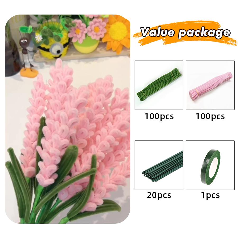 200 Pcs Pipe Cleaners Chenille Stem, Flowers Pipe Cleaner Craft, Colored Pipe Cleaner For Creative Handmade DIY Lavender Bouquet