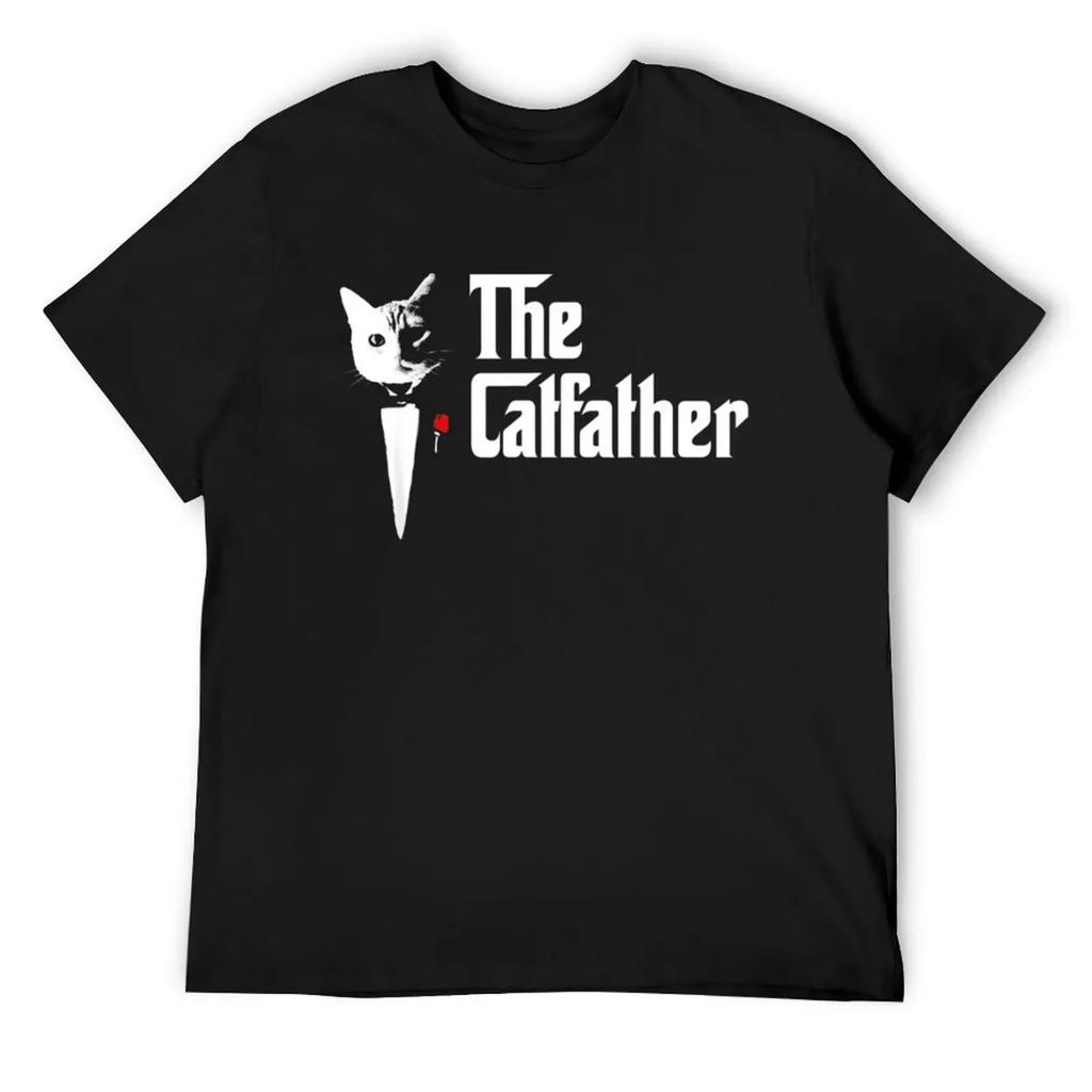 The Catfather Father Of Cats Funny Cat Dad T-Shirt Cotton Graphic Tees Anime T-shirts Man Men Clothing