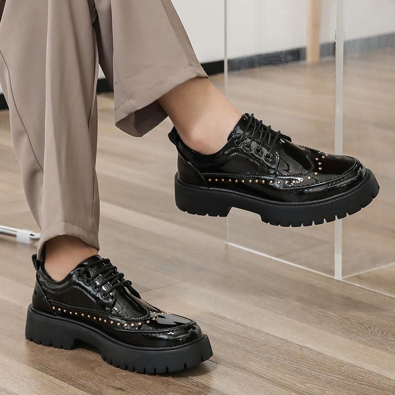 Fashion High Quality Men Artificial Leather Platform Oxfords Shoes Luxury Lace-Up Thick Soled Male Shoes Fashion Street Men Casual Shoes