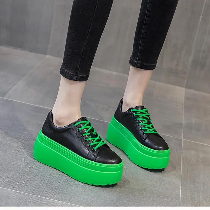Fashion Leather Women's Casual Shoes Super Thick 8 Cm Fashion Sneakers Thick Spring Apartment Women's Shoes