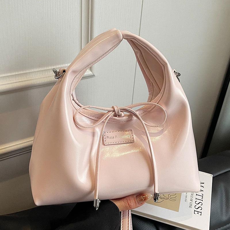 Early Spring New Gentle Wind Solid Color Soft Leather Handbag Bag Women's Simple Straps Bow Versatile Commuter Messenger Bag