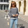 Round Neck Contrasting Color Versatile Knitted Top Simple Striped Sweater In Autumn and Winter Long-sleeved