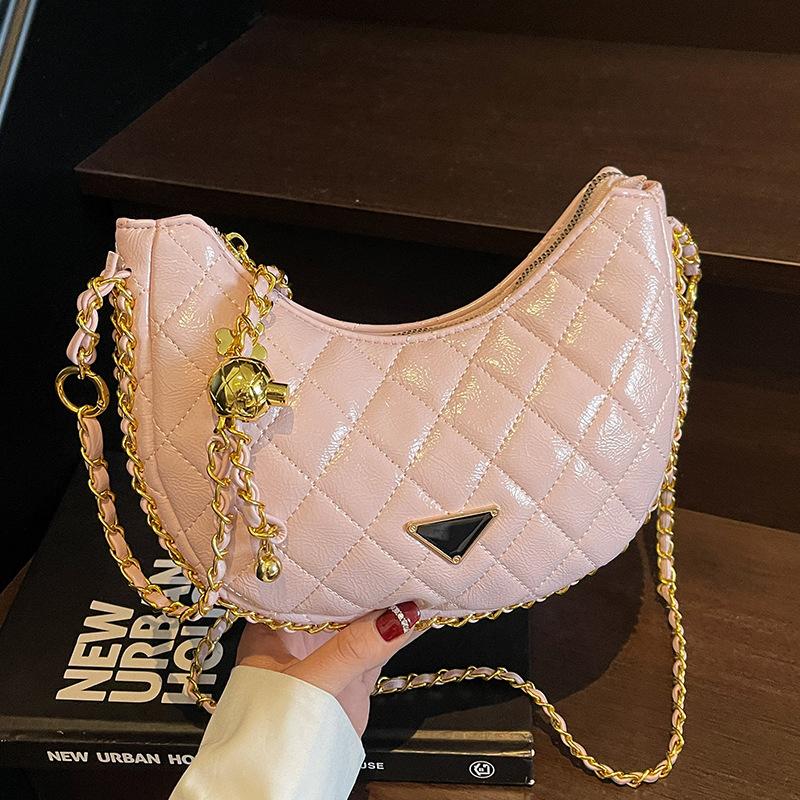 Popular Fashion High-end Diamond Check Chain Dumpling Bag Temperament Versatile Casual Style Crossbody Bag Girl