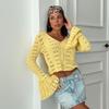 A Design-sense Hollowed-out Spicy Girl Knitted Cardigan In Solid Color, Long-sleeved V-neck, Short Flared Sleeve Top and Blouse