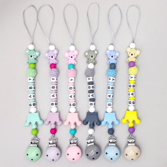 Adorable Koala Pendant Design: Featuring a charming koala-shaped pendant at the top, the chain combines soft pastel colors with playful aesthetics. This cute cartoon element enhances the babys sensory experience and adds a delightful decorative appeal suitable for infants.