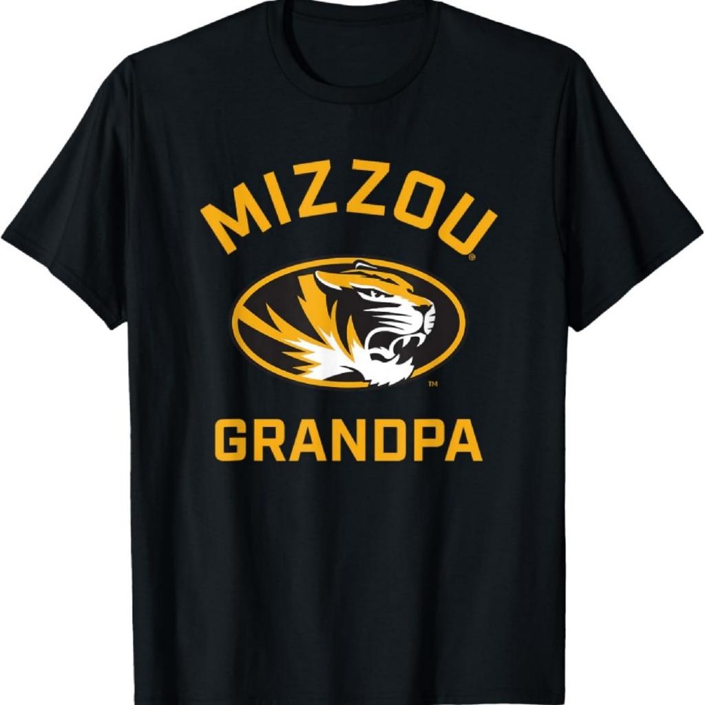 Mizzou Tigers Arched Grandpa T-Shirt - Black, Unisex-Adults, Short Sleeve, University Logo T-Shirt, Small