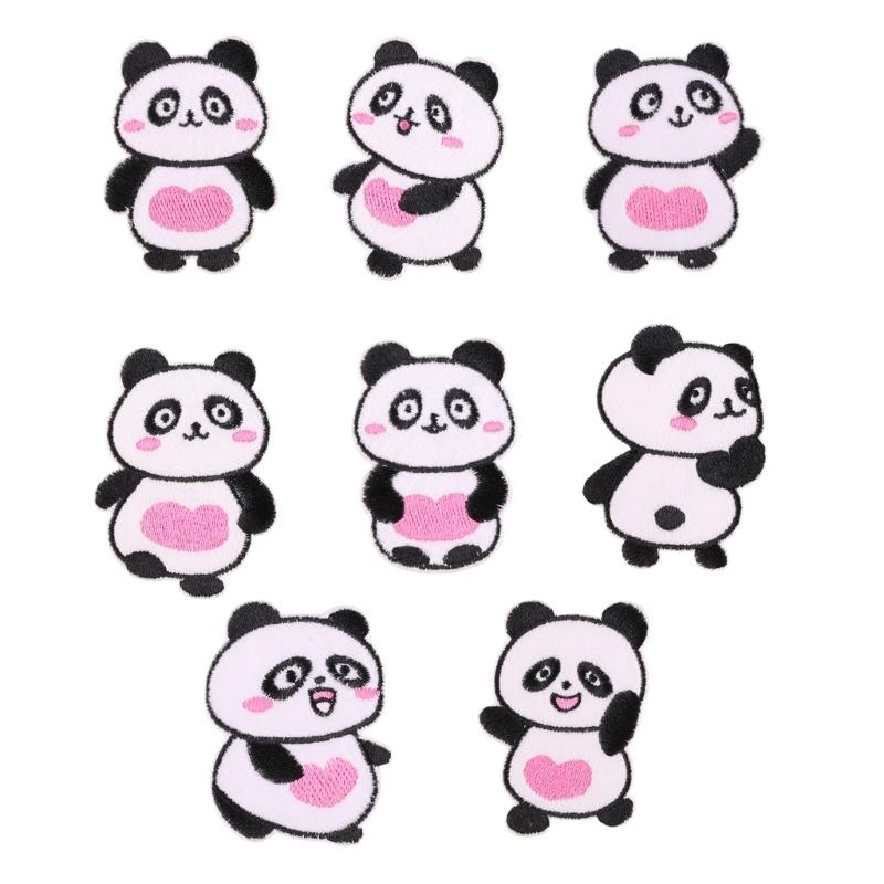 8 Pcs Cartoon Panda Embroidered Patches Iron On Patches Animal Repair Patches Sewing On Applique Patches for Clothes Bag