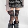 Black/White Sexy Lace Trim Fishnet Stockings Hollow Ultra-thin Japanese Series Knee Socks Floral Sweet Mesh Breathable Thighs
