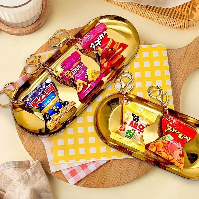 Simulation Korean Potato Chip French Fries Snack Bag Keychain Mini Snack Backpack Pendant Decoration Car Keyring Jewelry Gift
