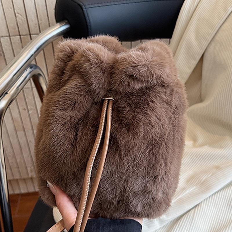 Autumn New Bucket Bag High-value Women's Single-shoulder Crossbody Simple Casual Chain Fashionable and Cute Plush Bag