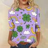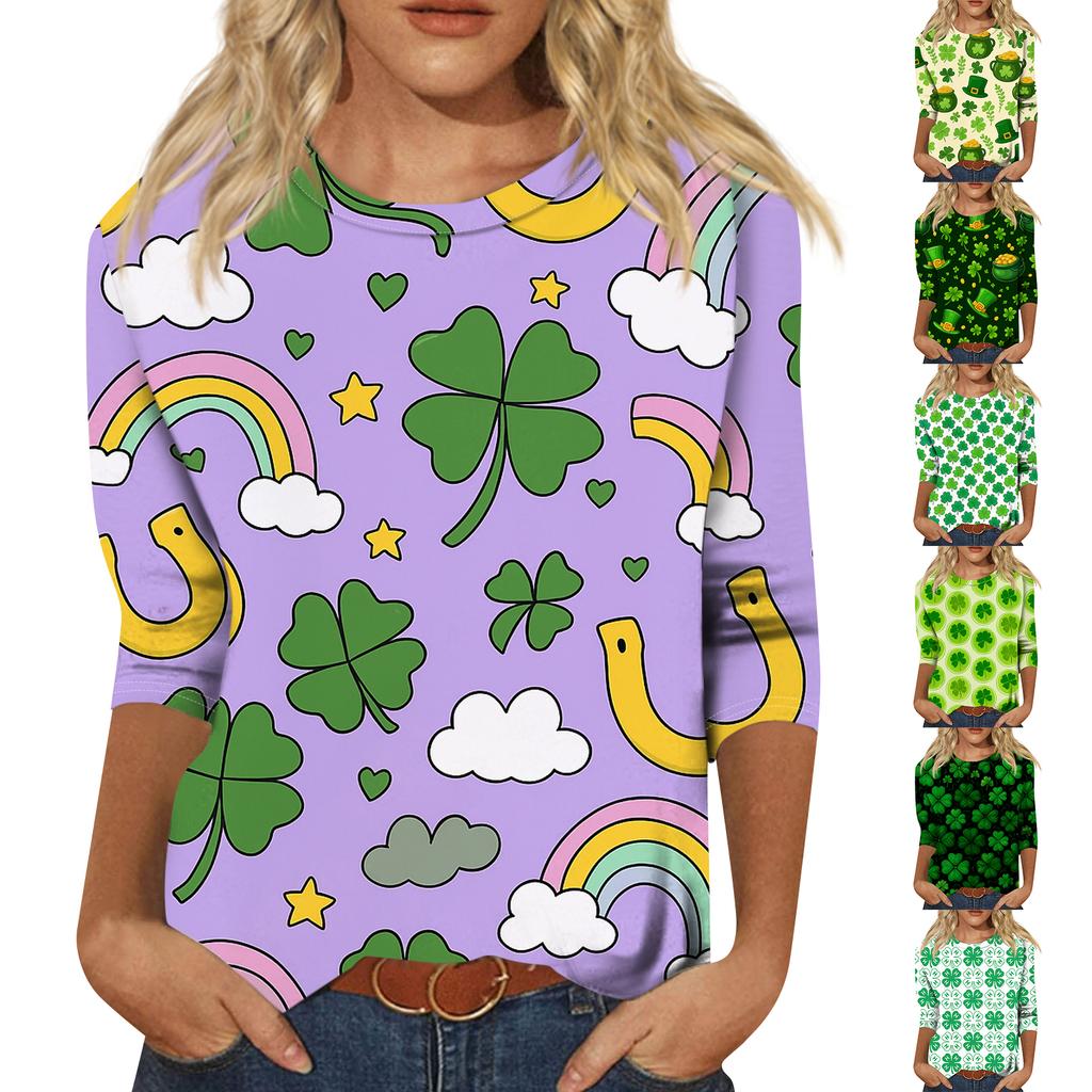 Women's Fashionable Casual Three-quarter Sleeve Printed Round Neck Top