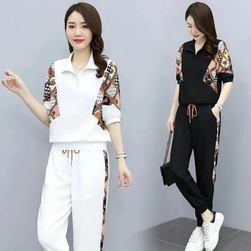 Women's Summer Tracksuit Pencil Pant Casual Cropped Top + Pants Two-Piece Set